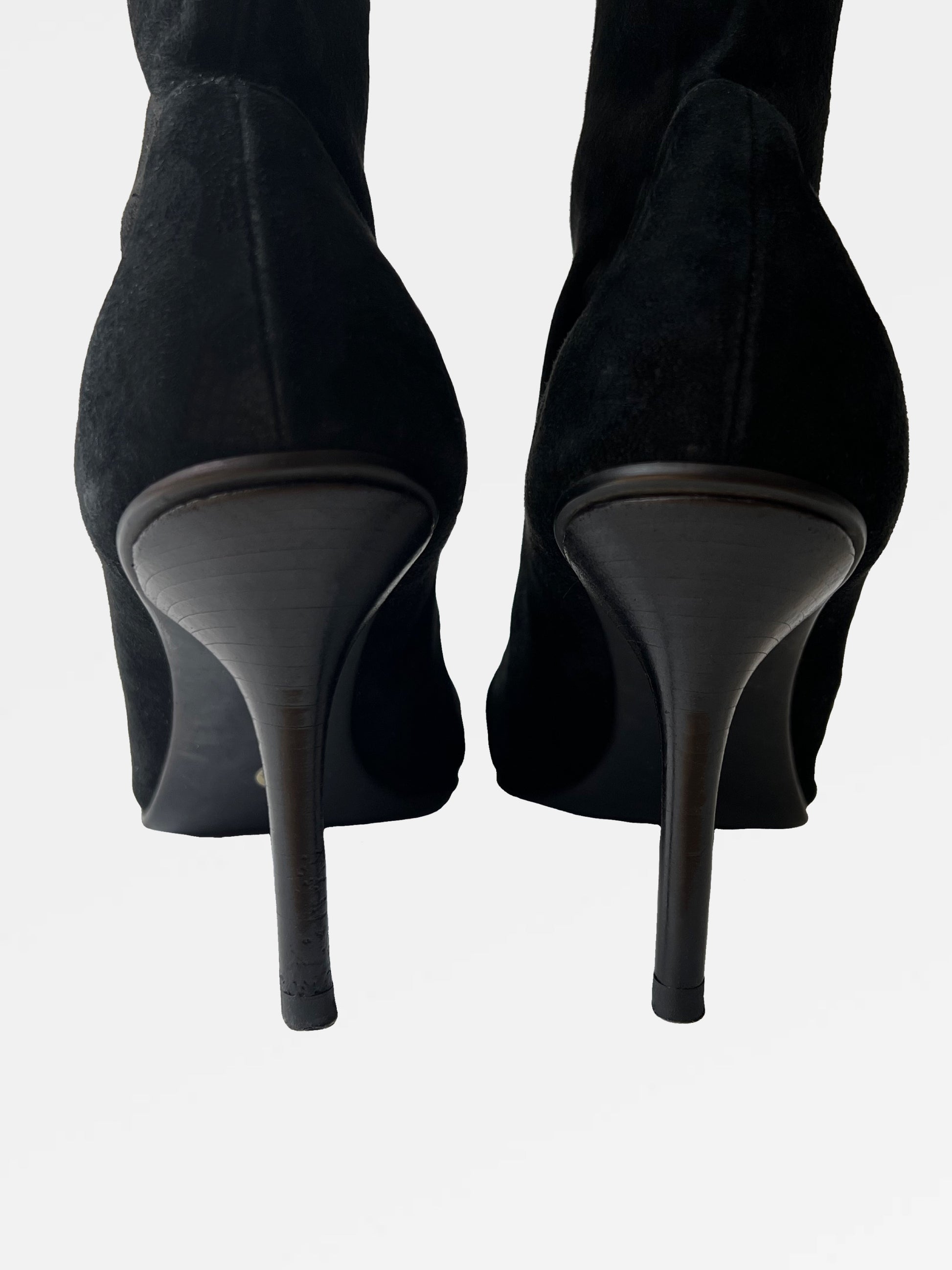 Very good. Minor scuffs on the suede; minor scratches on the heels.